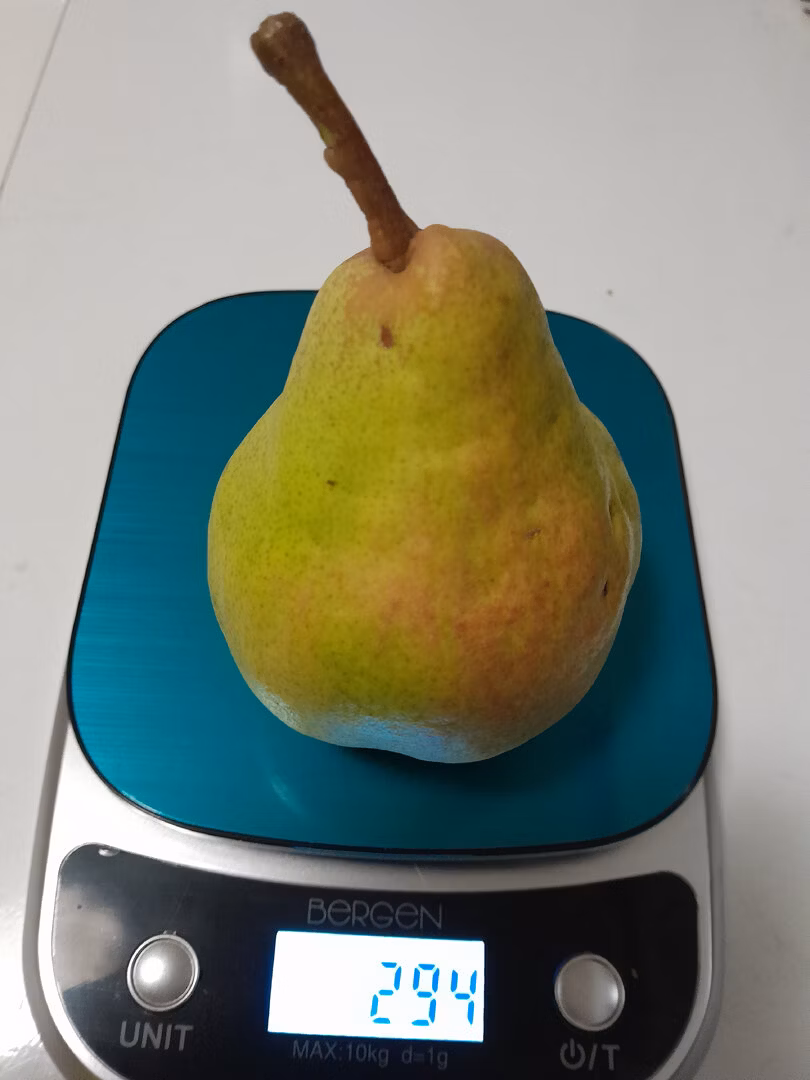 kääpiöpuustamme painoi 260 g ja kypsän hedelmän maku oli suoraan paratiisista! Päärynä onkin